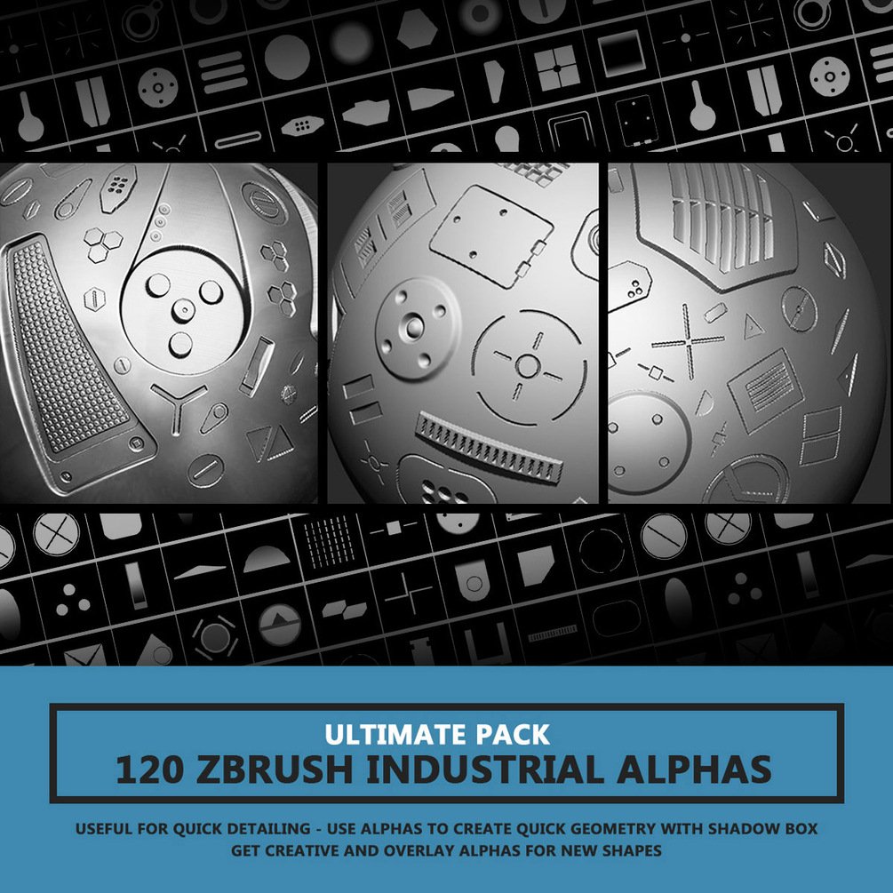 The ULTIMATE PACK Contains all of the original 60 Industrial Zbrush Alphas plus 60 NEW Industrial Alphas to use in your projects.