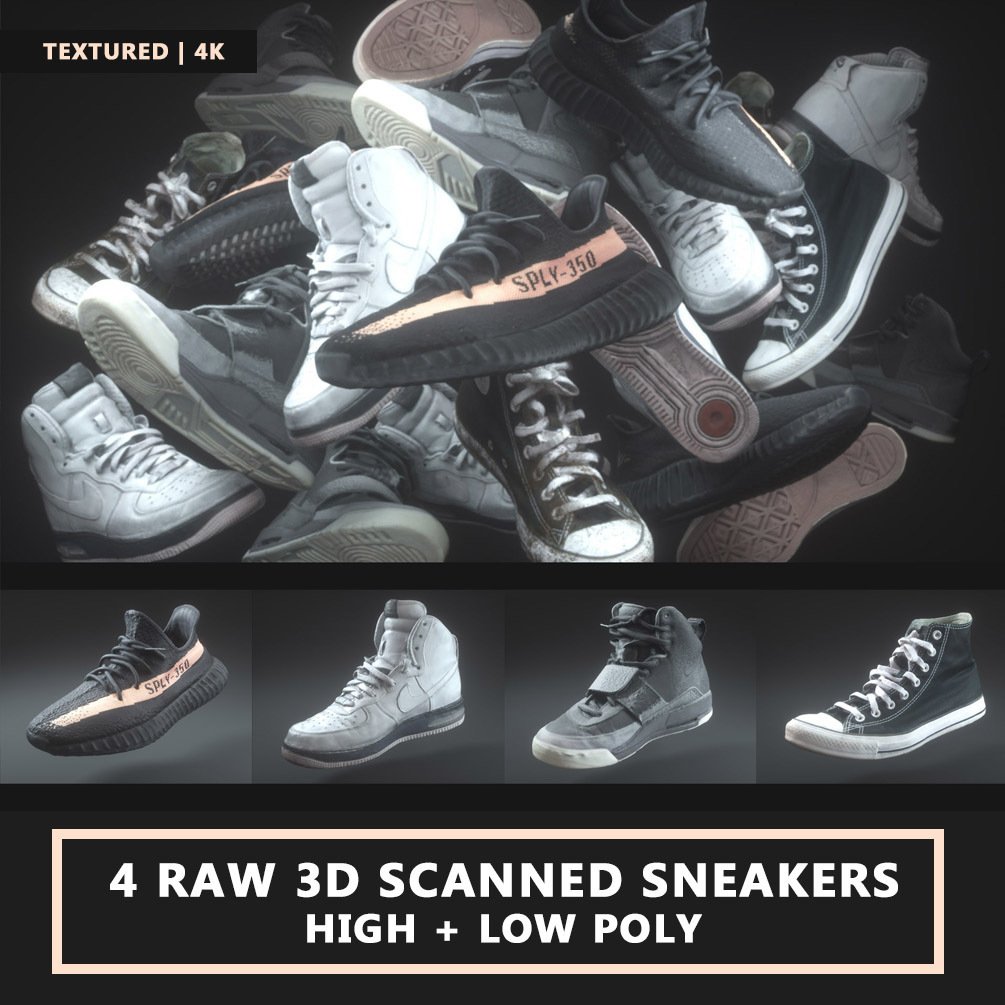 Included in this package is 4 Raw 3D Scanned Sneakers that are fully textured and ready to use.