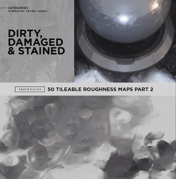 I’ve designed 50 roughness maps for creating surface imperfection that you can start using in your scenes to save you some time and get that surface imperfection that can help push your 3D models closer towards realism.